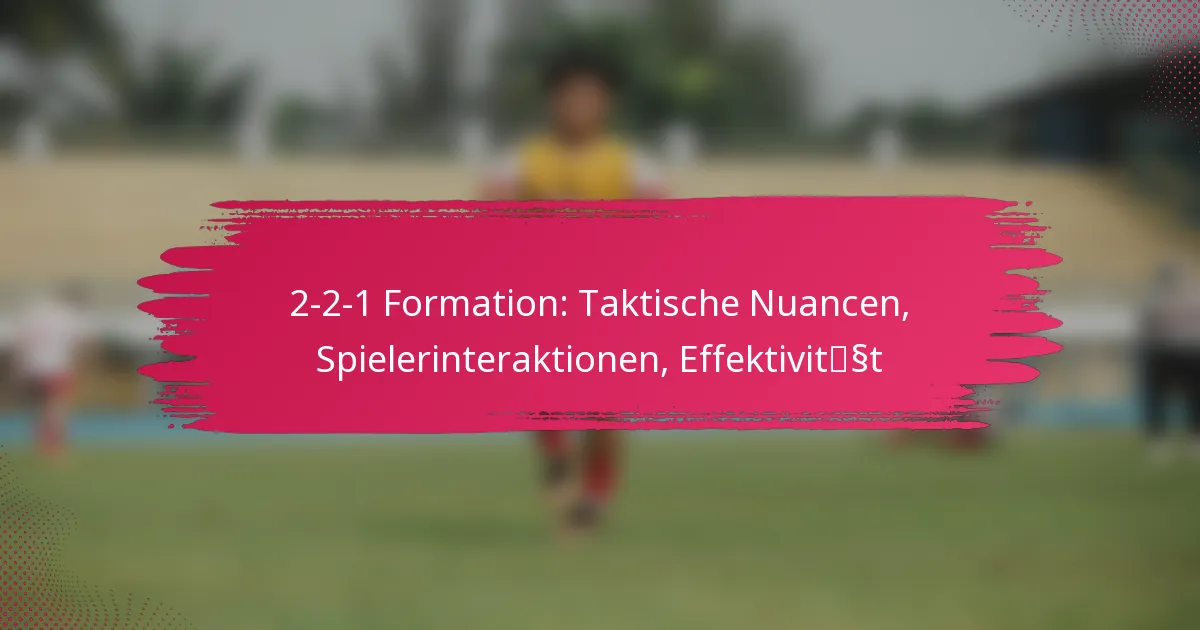Die 2-2-1-Formation ist eine taktische Anordnung, die zwei Verteidiger, zwei Mittelfeldspieler und einen Stürmer umfasst und darauf abzielt, ein Gleichgewicht zwischen Verteidigung und Angriff zu schaffen. Diese Struktur erleichtert nicht nur eine effektive Ballkontrolle und Übergangsspiel, sondern verbessert auch das Raummanagement, sodass Teams ihre Strategien gegen verschiedene Gegner anpassen können. Das Verständnis der unterschiedlichen Rollen und Interaktionen der Spieler innerhalb dieser Formation ist entscheidend, um ihre Effektivität in verschiedenen Spielszenarien zu optimieren.