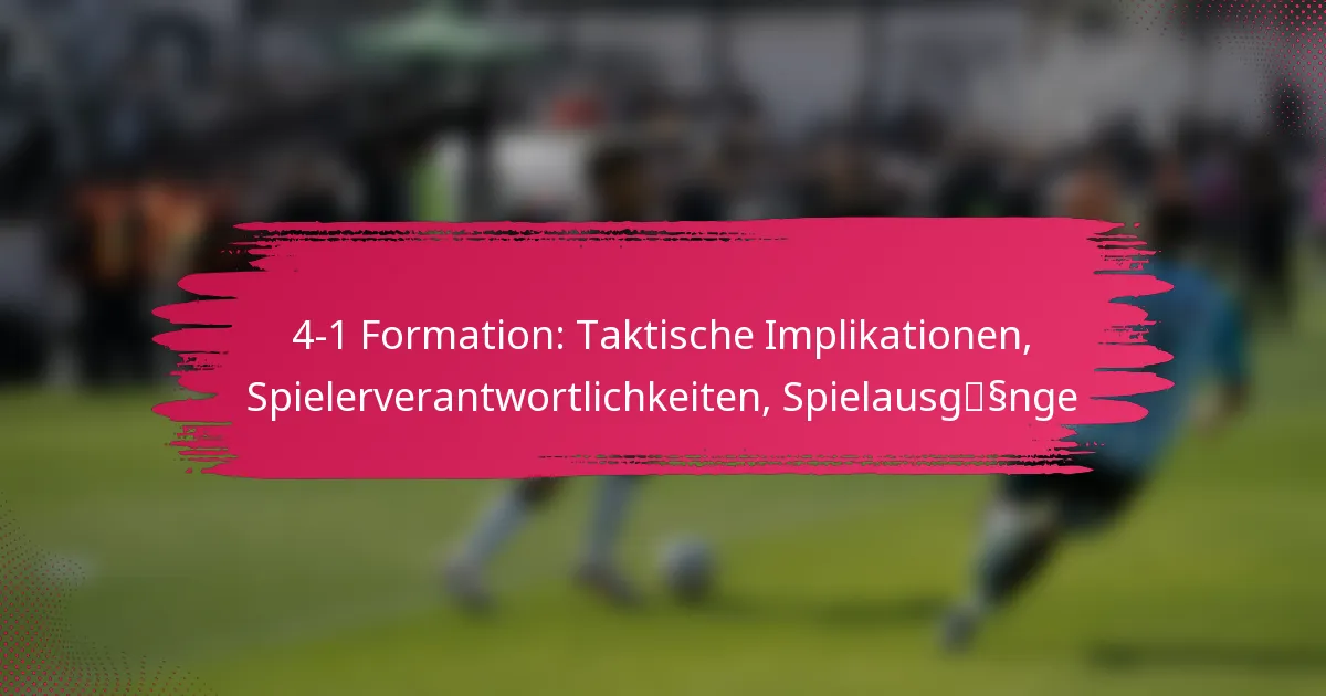 Die 4-1-Formation ist ein taktisches Setup, das ein Gleichgewicht zwischen defensiver Solidität und offensiver Vielseitigkeit schafft, was sie zu einer beliebten Wahl unter den Teams macht. Durch die Betonung einer starken defensiven Basis und der Kontrolle im Mittelfeld ermöglicht diese Formation den Spielern, ihre Strategien je nach Gegner anzupassen, was letztendlich die Ergebnisse der Spiele beeinflusst. Die Rolle jedes Spielers ist entscheidend, um dieses Gleichgewicht aufrechtzuerhalten und effektive Teamarbeit sowie Kommunikation auf dem Platz zu gewährleisten.
